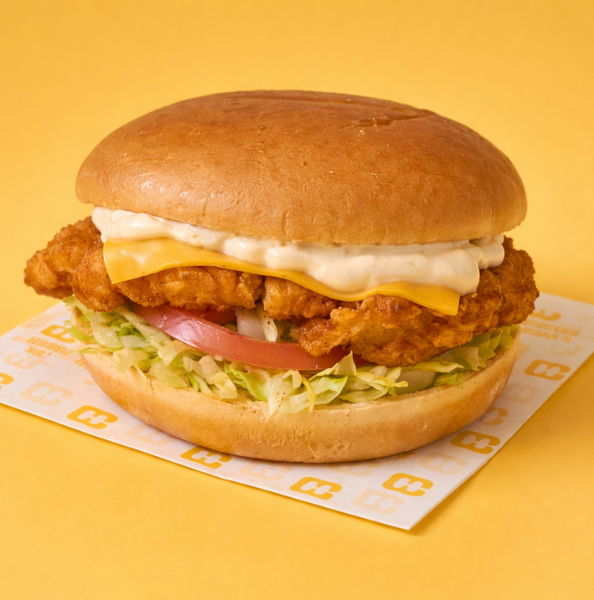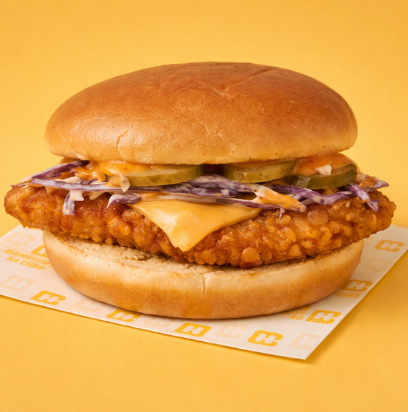Pão brioche, filete de frango panado, tempero picante secreto (disponível com