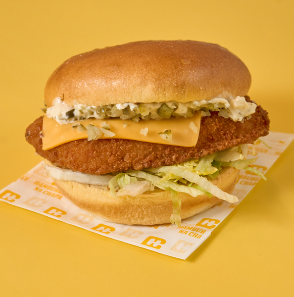 Pão brioche, filete de frango panado, tempero picante secreto (disponível